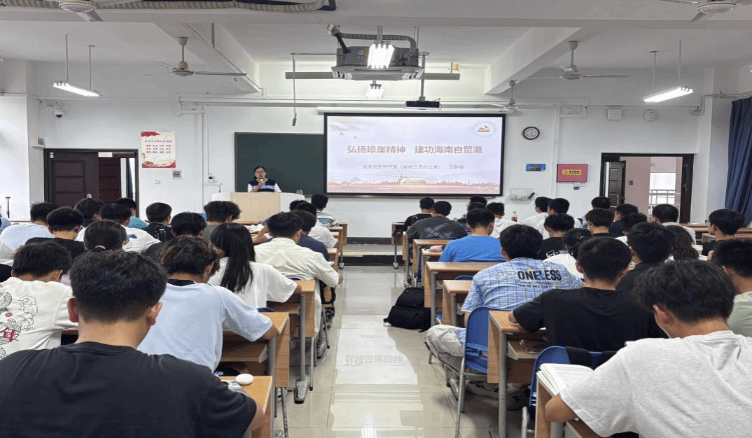 为深入贯彻落实习近平总书记在纪念中国人民抗日战争暨世界反法西斯战争胜利80周年大会上的重要讲话精神,教育引导广大青少年厚植爱国情怀、传承红色基因、砥砺强国之志,充分发挥党政干部、劳动模范、专家学者等各类社会主体育人功能,2025 年 9 月 29 日,我们邀请中共海南省委党史研究室科研宣教处处长卫静春走进思政课堂,为本科班级的学生讲授思政课。此次授课将地方红色精神与理想信念教育深度融合,为青年学子带来了一堂兼具历史厚度与现实意义的课程。