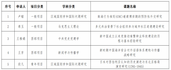 近日,全国哲学社会科学工作办公室公示了2025年国家社会科学基金年度项目立项名单。272亚洲必赢喜获5项课题立项,其中一般项目2项、西部项目2项、青年项目1项,涉及马克思主义理论、中共党史党建学、区域国别学和国际问题研究、新闻学与传播学四个学科。立项课题信息如下: